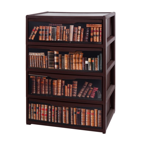 Комод прямоугольный "Элеганс" 4х ярусный с рисунком "Книги" *
