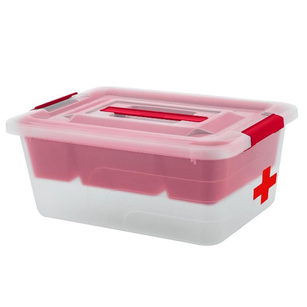 Аптечка-контейнер с лотком и ручкой 13 л цвет прозрачный с красным
