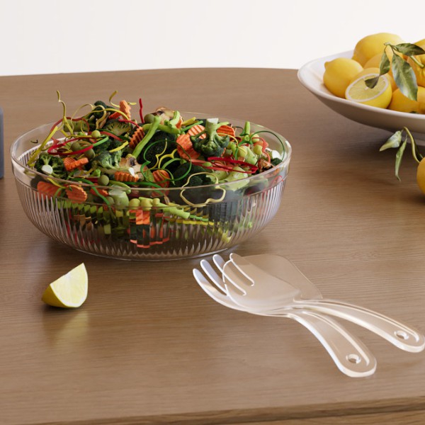 Салатник плоский прозрачный "КРИСТАЛЛ" 3л с приборами для сервировки