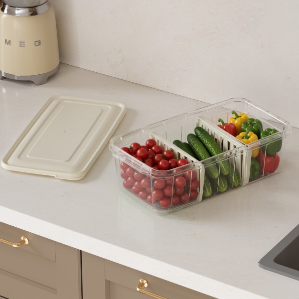 Контейнер для холодильника с крышкой со съемными разделителями 373*193*110мм прозрачный