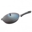 Сковорода литая чугунная 240х40 с бакелитовой ручкой с алюминевой крышкой