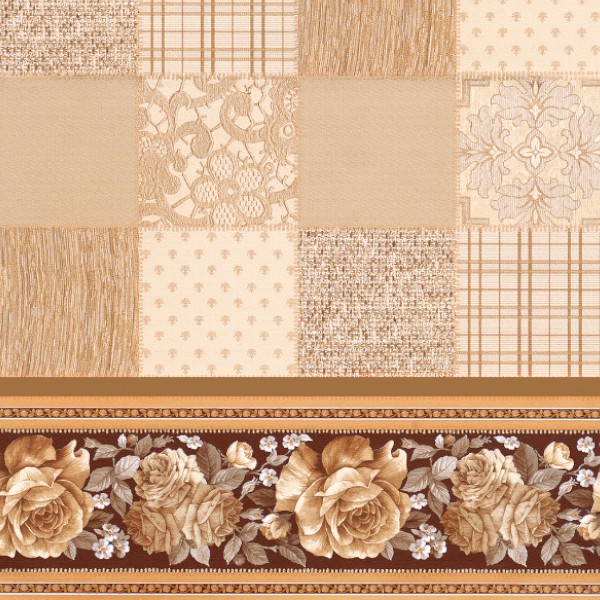 142А Клеенка нетканая основа ДЕКОРАМА (DEKORAMA) клетки бежевые и полоса с розами 1.4*20м ТУРЦИЯ