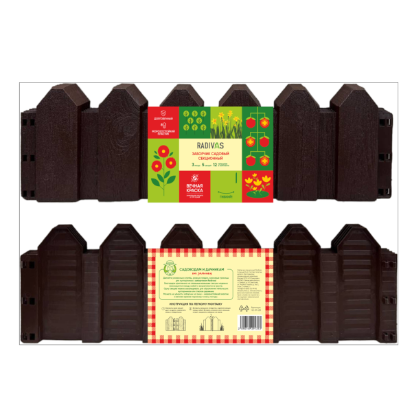 Заборчик садовый секционный РАДИВАС (RADIVAS) 5 секций (3м) коричневый