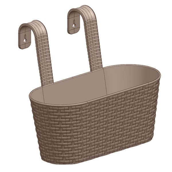 Кашпо "Ведро декоративное РАТТАН" большое овальное настенное с крючками для подвеса, цвет серый