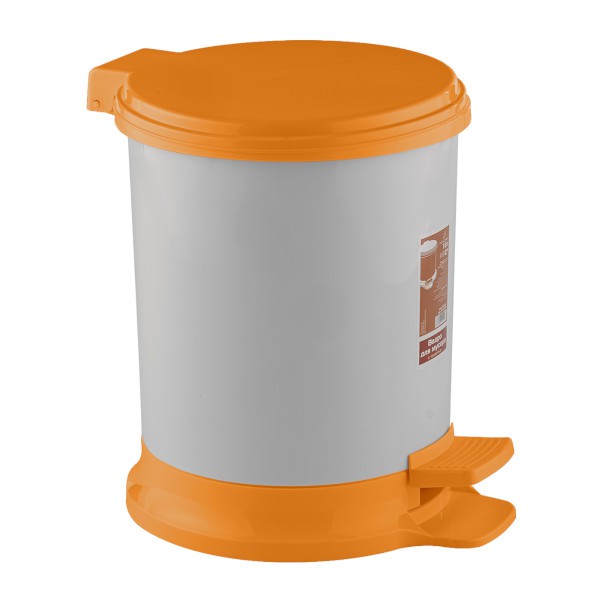 Ведро для мусора с педалью 7л цвет белый с оранжевой крышкой, устойчивое