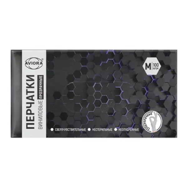 Перчатки АВИОРА (AVIORA) ВИНИЛОВЫЕ "M" (50пар в упаковке) цена за 1 упаковку